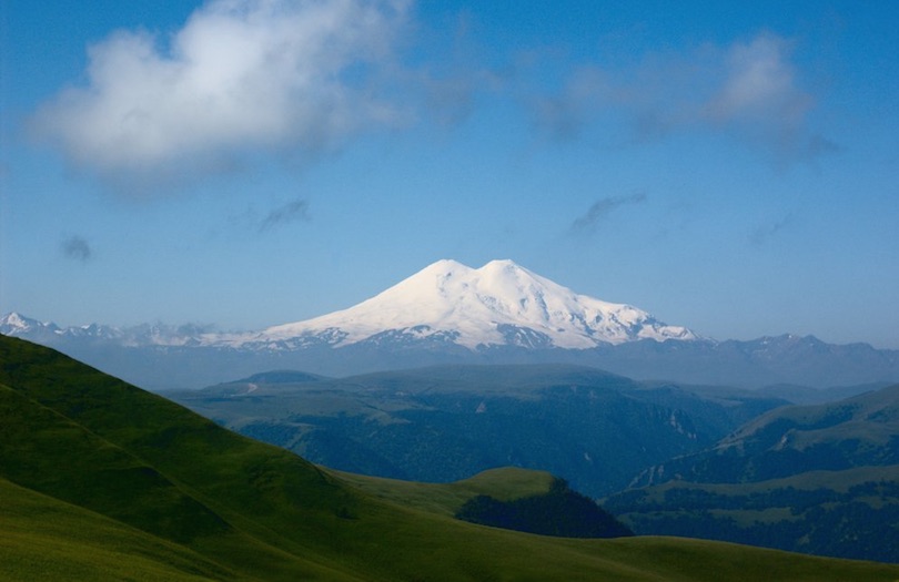 Mount Elbrus is located in the Caucasus Mountain Range in Southern Russia. At 5,642 meters (18,510 ft), Elbrus is included as one of the Seven Summits, the highest summits on each of the planet’s seven continents, attracting both experienced and novice mountain climbers. While the mountain was formed from a volcano, it is considered dormant, with no recorded eruptions. A cable car system can take visitors as high as 3,800 meters (12,500 ft), facilitating ascents to the summit.