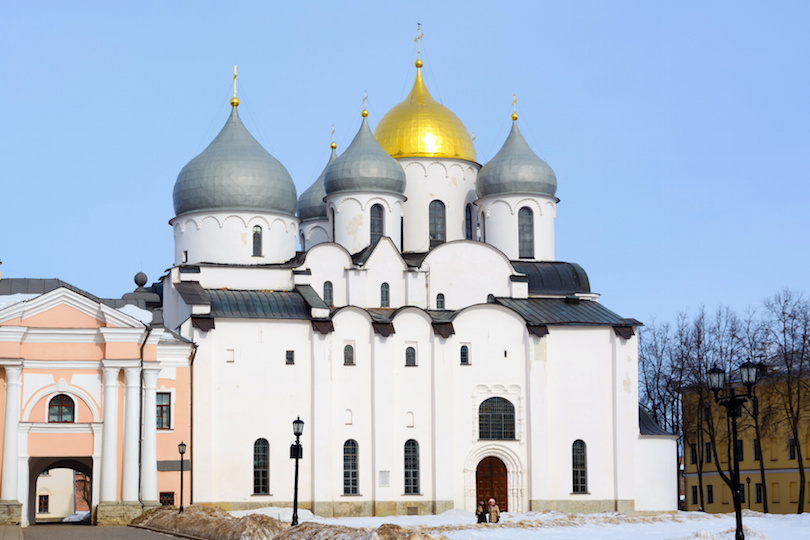 Located in Novgorod, Russia’s oldest city, Saint Sophia Cathedral is situated within the grounds of the city’s Kremlin. Standing 125 feet high and adorned with five spectacular domes, the cathedral is the oldest church building in Russia. Saint Sophia Cathedral features an array of ancient religious artifacts, including The Mother of God of the Sign, an icon that legend says saved Novgorod from attack in 1169. The cathedral’s three famous ornately carved gates also date back to the 12th century.