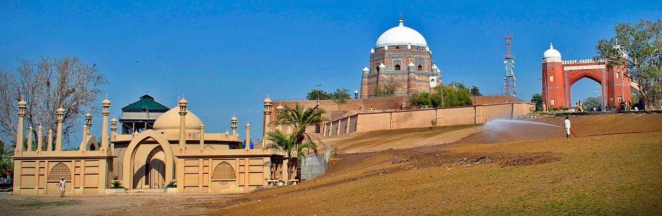 The Eidgah is situated about a mile to the north of the Fort area. It was built in] 735 AD by Nawab Abdul Samad Khan when he was the Viceroy of Multan. The mosque provides an astronomical courtyard and a sizably voluminous prayer chamber
