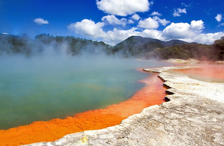On the tumultuous Pacific Ring of Fire, Rotorua is one of the most active geothermal regions in the world. This is a land where the earth speaks. Boiling mud pools, hissing geysers, volcanic craters, and steaming thermal springs betray the forces that birthed much of New Zealand’s dramatic topography. Visitors can take a walking tour of these geothermal wonders, soak in steaming mineral springs, and learn about the region’s rich Maori history and culture. Adventure seekers will also find plenty of things to do. Sky-diving, luging, and mountain biking are some of the activities on offer. Trout fishing is also popular, and Rotorua is the gateway to the ski fields of Mt. Ruapehu. Nearby Wai-O-Tapu is also a popular tourist attraction with colorful hot springs and the famous Champagne Pool and Lady Knox Geyser.
