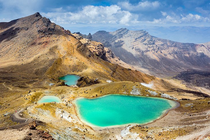 In the center of the North Island, a few kilometers from glittering Lake Taupo, New Zealand’s largest lake, Tongariro National Park is a dual World Heritage Site due to its spectacular volcanic features and its importance to the Maori culture. In 1887, Maori chief Te Heuheu Tukino IV gifted the volcanic peaks of Tongariro, Ngauruhoe, and part of Ruapehu to the people of New Zealand in order to preserve this sacred land. One of the oldest national parks in the world, Tongariro is a land of dramatic beauty with towering volcanoes, turquoise lakes, arid plateaus, alpine meadows, and hot springs. A highlight of the park is the Tongariro Alpine Crossing, one of the most popular day walks in the country.
