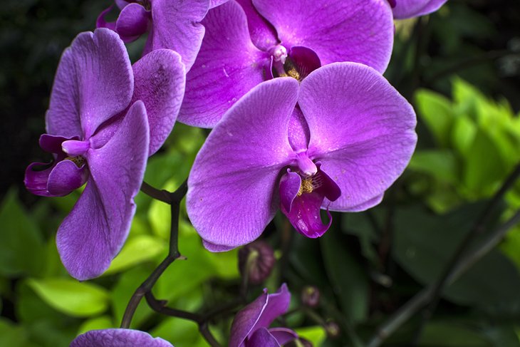 The 30-acre botanical garden next to Piedmont Park comes as a surprise, right in Midtown Atlanta. This four-season attraction always has something in bloom, from its spring bulb display through the colorful autumn foliage, and at any time of year its several indoor gardens transport visitors to the tropics. The Fuqua Orchid Center displays orchids of all shapes and colors, while the High Elevation House shows the astonishing variety of plants native to the Cloud Forests of the Andes. Here, exotic bromeliads, mosses, ferns, trailing vines, and miniature orchids surround a massive indoor waterfall, and more exotics thrive in the Tropical Rotunda. Outside are an Edible Garden and Outdoor Kitchen, where fruits and vegetables are grown as landscape plants.