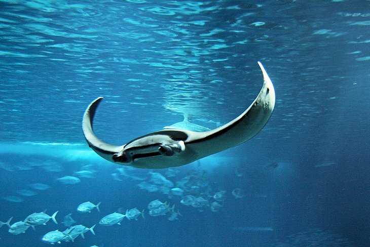 Arguably Portugal’s most popular and family-friendly visitor attraction, Lisbon’s oceanarium is brilliantly conceived to highlight the world’s diverse ocean habitats. This is one of Europe’s best and largest oceanariums, containing a vast array of fish and marine animals. Four separate sea- and landscapes recreate the ecosystems of the Atlantic, Pacific, Indian, and Antarctic oceans. A huge central tank, visible from different levels, teems with shark, ray, and many other finned wonders and denizens of the deep. The transparent plexiglass design is such that smaller tropical species housed in separate aquaria set around the main tank appear to be swimming with their larger cousins. Complementing this amazing spectacle are the open-air landscapes where penguins, sea otters, and other cute and cuddly birds and mammals co-exist in carefree harmony.
