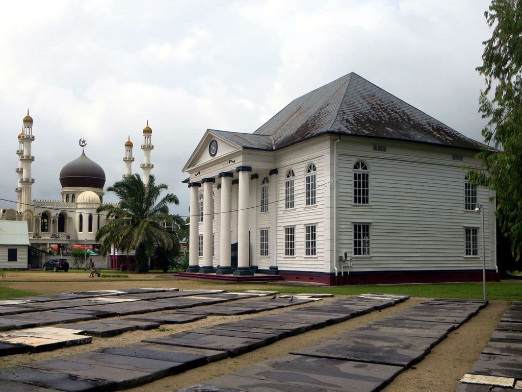 The largest Mosque in the Caribbean is Mosque Keizerstraat, located in Paramaribo. It is a beautiful building with stunning gardens around it. No machinery was used during construction and thus it took 20 years to complete. Not only is it an impressive place of worship it’s unique because of its next door neighbour, the Nevah Shalom Synagogue. Built in the 19th century it has a sandy floor as a symbol of the Hebrews 40 years in the desert. Locals take great pride in the location of these two places of worship and feel it’s a reflection of their multi-ethnicity community.